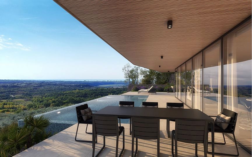 In idyllischer Lage im Dorf Krašica bei Buje, umgeben von Olivenhainen, Weinbergen und unberührter Natur, befindet sich diese freistehende Villa in der finalen Bauphase. Die Immobilie überzeugt durch offenen Meerblick, großzügige Architektur und ein hohes Maß an Privatsphäre.
